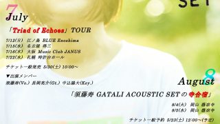 髭(HiGE)のフロントマン・須藤寿によるソロプロジェクト、須藤寿 GATALI ACOUSTIC SETがこの夏、再び動き出します。7月は3人編成の「Triad of Echoes」で江の島・名古屋・大阪・札幌を巡り、8月はオリジナルメンバー5人が集結する「寺合宿」「月旅行」「大団円」を岡山・神戸・渋谷で実施。
